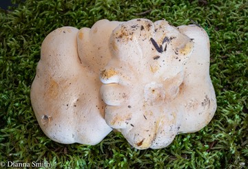 This pale orange-capped Albatrellopsis is mychorrhizal with conifers. It tends to grow in groups from the ground. The pores are white and like species of Albatrellus they are decurrent. White spore print. Flesh of fresh specimens is soft. Has clamp connections. KOH reaction is purple. Edible. It is in the Albatrellaceae family of the Russulales.