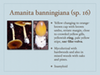 This presentation is focused on visible macro characteristics of amanitas. If you were amanita expert Rod Tulloss, you would combine your knowledge of the morphology of amanitas with chemical tests and microscopic analysis to definitively identify them. If you have a mushroom with white spore and free gills, it is either a Lepiota or an Amanita. This describes a combination of characters that exits for relatively few amanitas. It is sort of a composite of Amanita virosa and Amanita muscaria. 002-001