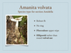 There are 7 sections total: 3 in the subgenus Amanita and 4 in the subgenus Lepidella. The species in the three subgenus Amanita groups all have inamyloid spores. The species in the Lepidella subgenus all have amyloid spores. 010-001