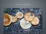 Orange, strongly ZONED cap, thick flesh, acid white latex that slowly stains flesh PINKISH-CINNAMON. DECURRENT cream to pinkish buff gills, close, PITTED STIPE. In deciduous woods with oak and hickory. 044-001