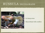 Copper orange cap - cuticle doesn’t easily peel Gills frequently forked by stem. Light Yellow spore print Like the (reddening then) blackening white russulas, it’s flesh is firm. The graying or blackening is not immediate. 019-001