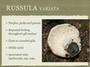 Russula cyanoxantha (European name) is very similar in green and purple colors, but has less conspicuous forking (only at stipe, if at all; and has a mild taste, grows with both hardwoods and conifers. Both R. variata and R. cyanoxantha have a white spore print. 033-001