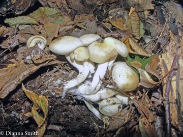 Leucocybe connata grows in tufted groups. It has a white spore print. Not recommended for eating. It is in the Lyophyllaceae family in the Agaricales order of the Basidiomycota.
