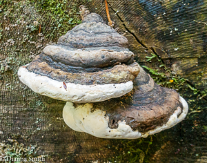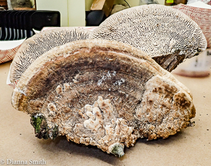 The name ‘Fomitopsidaceae' is a reference to the fact that some genera and species in this family resemble Fomes. Many fungi in this family are perennial and brown-rotters that are parasites on trees. To see enlarged versions of each photo represented in this family and associated descriptions, click on the first photo and then click on the textual links above each photo to get to the next alphabetically listed genus and species.