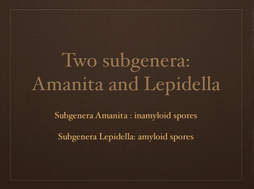 There are two subgenera and a total of seven groups with three sections in subgenera Amanita and 4 sections in subgenera Lepidella.