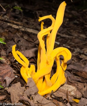 It consists of smooth, yellowish, club-shaped fruitbodies. Though