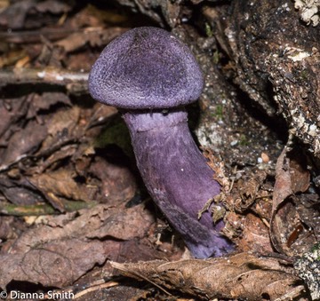 CORTINARIUS violaceus is the darkest purple cort. It has a purple black cuticle, flesh and gills. Purple stem with bulbous base. Rusty-ochre spore print. Not favored for dyeing. Edible, but bitter. In NA grows under conifers primarily.