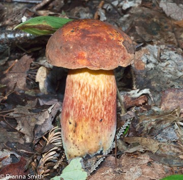 Red cap, pores & stem. Stains blue.