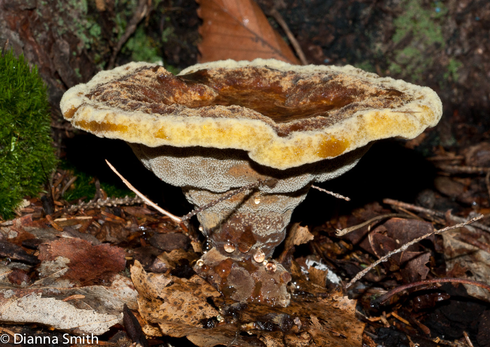 “Dyer’s Polypore” Annual parasitic polypore with velvety cap. Brown rotter on conifers. Grows from the roots of conifers, especially pine, hemlock, larch, spruce and Douglas fir. Causes butt rot and heart rot. Cap and pores become darker and harder as the fruit body matures. Saprotrophic on dead wood. It is in the Fomitopsidaceae family of the Polyporales.