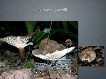 Dry, velvety, wrinkled brownish cap. Latex white and unchanging. Gills well-spaced. Deciduous and coniferous woods.  Edible. 032-001