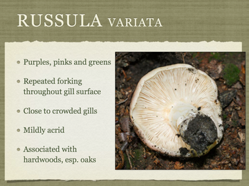 Both R. variata and R. cyanoxantha have a white spore print. 033-001