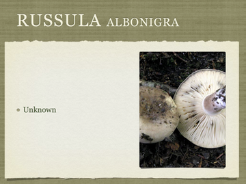 This is not R. Albonigra, though like it - it bruises black without going through a red stage. Albonigra is seen more on west coast than east.  It is a large mushroom with decurrent gills. 015-001