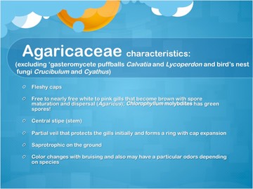 • AGARICALES: Characteristics of Select families by Dianna Smith