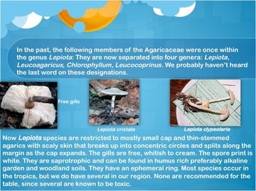 • AGARICALES: Characteristics of Select families by Dianna Smith