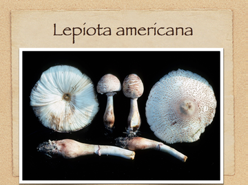 (Lepiota, Macrolepiota) The Shaggy Parasol. Known for its red-staining flesh, scaly cap, white free gills, movable ring, bulbous base, and nutty flavor. Another similar popular edible is Lepiota americana, which bruises yellow. Some people experience gastrointestinal pain and diarrhea when eating one or both of these mushrooms, so it is recommended that when you try them for the first time, just eat a small portion to taste and see who you react. The same caution can be suggestion for eating anything from nuts to grains or vegetables! 022-001 »