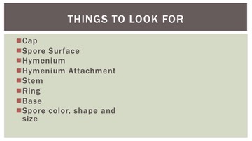 • AGARICALES: Characteristics of Select families by Dianna Smith