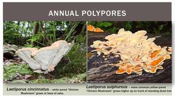 • POLYPORES, CRUSTS and STEREUMS (Tough pored, ‘gilled’ or with smooth hymeniums primarily found growing from wood substrates)