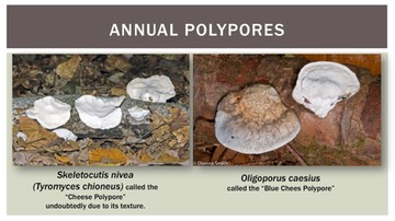 • POLYPORES, CRUSTS and STEREUMS (Tough pored, ‘gilled’ or with smooth hymeniums primarily found growing from wood substrates)
